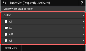 [Other Sizes] را فشار دهید، و اندازه کاغذ را از لیست نمایش داده شده انتخاب کنید.