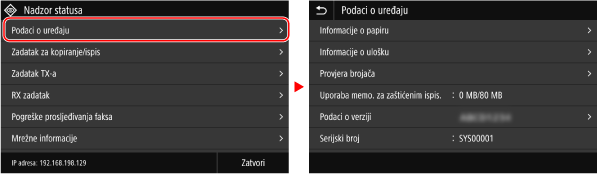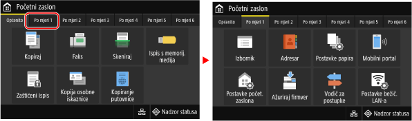 Dodirom naziva ili gumba stavke odabire se ta stavka. Prikazat će se odabrani zaslon ili će se pokrenuti odabrana funkcija.