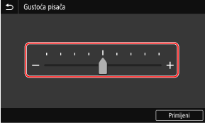 Dodirnite gumbe [+] i [-] da biste prilagodili vrijednost. Kada se klizač prikazuje kao u nastavku, vrijednost možete prilagoditi tako da ga povučete ulijevo ili udesno.