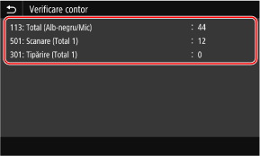 Numărul de pagini imprimate include faxurile recepționate și rapoartele și listele imprimate.