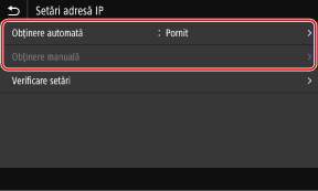 Se afișează ecranul [Setări adresă IP (Obţinere automată)].