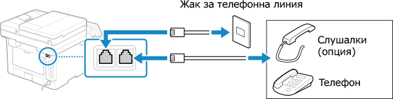 Използвайте предоставения телефонен кабел, за да свържете устройството към телефонната линия.