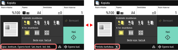 Ezarpenak automatikoki garbitzeaModu lehenetsian, denbora-epe zehatz baten ondoren ez bada inolako eragiketarik burutu, pantailan konfiguratzen ari diren ezarpenak garbituko dira eta [Etxea] pantaila bistaratuko da. Ezarpenak garbitu arte pasa behar den epea eta gero bistaratuko den pantaila alda ditzakezu.