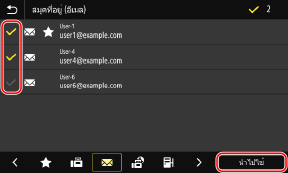 เลือกกล่องกาเครื่องหมายของปลายทางเพื่อเพิ่มลงในกลุ่ม แล้วกด [นำไปใช้]