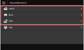 คุณสามารถลงทะเบียนปลายทางไปยังสมุดรายชื่อโดยใช้แผงควบคุม คุณสามารถใช้วิธีการต่อไปนี้เพื่อลงทะเบียนที่อยู่อีเมล (อีเมล, I-Fax) และหมายเลขแฟกซ์: ลงทะเบียนปลายทางโดยใส่ข้อมูลของปลายทางโดยตรง ลงทะเบียนปลายทางโดยการเรียกใช้รายการบันทึกงาน TX ลงทะเบียนปลายทางโดยการค้นหาข้อมูลผู้ใช้ที่จัดการด้วยเซิร์ฟเวอร์ LDAP |