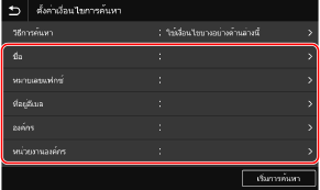 3 | เลือกรายการที่ค้นหา และระบุสตริงค้นหา ![]() ใส่สตริงเพื่อค้นหา แล้วกด [นำไปใช้] คุณสามารถระบุรายการค้นหาได้หลายรายการ |