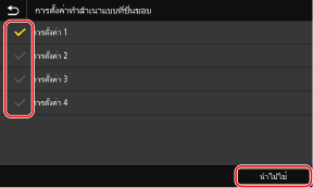 เลือกกล่องกาเครื่องหมายของการตั้งค่าที่คุณต้องการกำหนดให้เป็นปุ่มทางลัด แล้วกด [นำไปใช้]