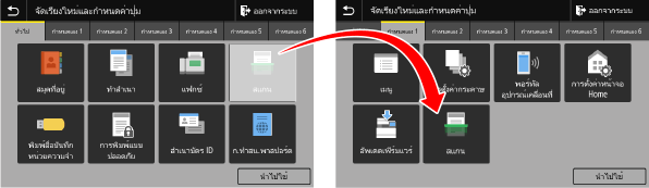 คุณสามารถจัดเรียงปุ่มบนหน้าจอ [Home] และย้ายปุ่มไปยังแท็บอื่นๆ