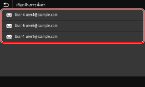 บนแท็บ [ระบุปลายทาง] ของหน้าจอการสแกนหรือส่งแฟกซ์ ให้กด [เรียกคืนการตั้งค่า]