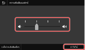 ลากแถบเลื่อนไปทางซ้ายหรือขวาเพื่อปรับระดับเสียง แล้วกด [นำไปใช้]