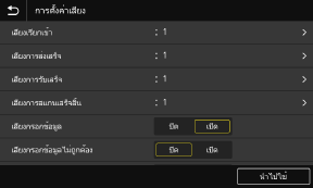 คุณสามารถปรับระดับเสียงการแจ้งเตือนได้ เช่น เมื่อส่งและรับแฟกซ์สำเร็จ และตั้งค่าว่าจะให้เครื่องส่งเสียงแจ้งการทำงานและสถานะหรือไม่
