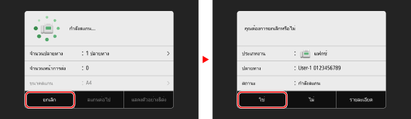 คุณสามารถยกเลิกการส่งแฟกซ์โดยปฏิบัติตามคำสั่งบนหน้าจอ
