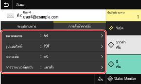 หากปลายทางที่ส่งถูกจำกัดเนื่องจากการตั้งค่าการรับรองความถูกต้องสำหรับฟังก์ชันส่ง คุณจะไม่สามารถระบุปลายทางอื่นได้ สำหรับรายละเอียด โปรดติดต่อผู้ดูแลระบบ