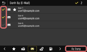 Nếu màn hình [PIN Danh Bạ] được hiển thị, nhập mã PIN, và nhấn [Áp Dụng].