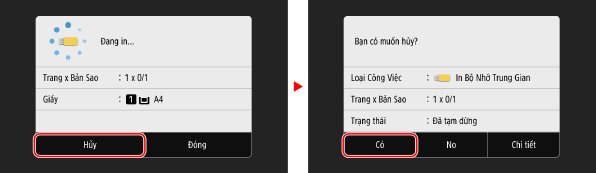Làm theo hướng dẫn trên màn hình để hủy in.