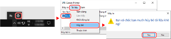 Nếu màn hình trên không được hiển thị, hãy nhấp đúp vào biểu tượng máy in trong vùng thông báo của Windows, chọn tài liệu để hủy, và nhấp vào [Document]