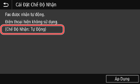 Sau khi thông báo [Đã định cấu hình cài đặt.] xuất hiện, màn hình [Cài Đặt Chế Độ Nhận] được hiển thị.