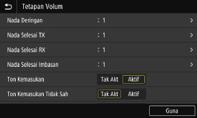 Tetapkan sama ada untuk mengeluarkan bunyi apabila operasi imbasan, salin, atau lain-lain pada mesin telah selesai.