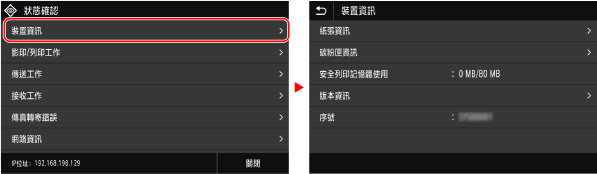 您輕觸項目名稱或按鈕時,可以選取該項目。將顯示選取的畫面,或執行選取的功能。