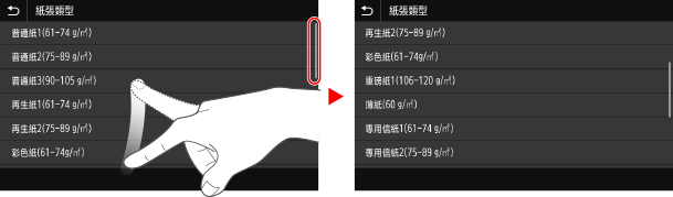 畫面上出現捲軸時,表示畫面有無法完整顯示的項目或資訊。撥動或拖曳以便沿著您移動指尖的方向捲動畫面。