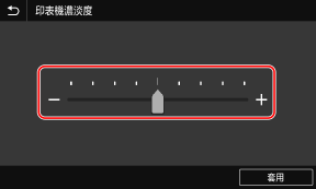 輕觸 [+] 和 [-] 按鈕可調整值。滑桿顯示如下時,您可以向左或向右拖曳來調整值。