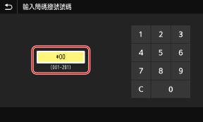在掃描或傳真畫面上指定目的地時,除了使用目的地清單之外,您也可以輸入編碼撥號來指定目的地。