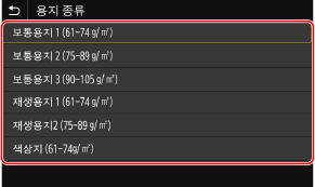 수동 급지대에 적재된 용지의 종류를 선택합니다.