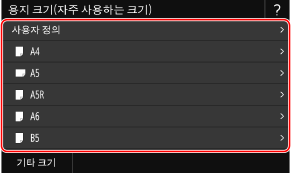 용지를 가로 방향으로 적재하는 경우 [A5]를 선택합니다. 용지를 세로 방향으로 적재하는 경우 [A5R]을 선택합니다.