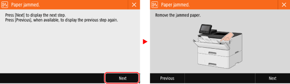 Display example: When an Error Occurs Touch Panel Model ![]() Black and White LCD Model ![]() |