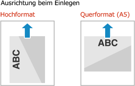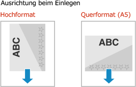 Standardmäßig unterscheiden sich Ausrichtung des einzulegenden Papiers und zu bedruckende Seite, je nachdem, ob Sie eine oder beide Seiten bedrucken möchten.