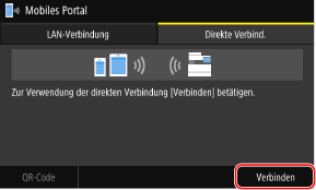 1 | Drücken Sie auf der Registerkarte [Direkte Verbind.] auf [QR-Code]. Es wird ein QR-Code angezeigt. |