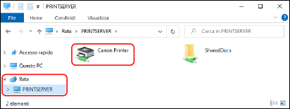 In [Rete], selezionare il server di stampa per visualizzare la stampante condivisa.