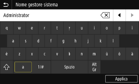 Inserire caratteri alfanumerici utilizzando la tastiera e i tasti numerici sul pannello di controllo.