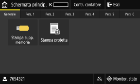 ![]() | [Impostaz. sch. princ.] Consente di aggiungere i pulsanti di collegamento alla schermata [Schermata princip.] e di modificare la disposizione dei pulsanti. Modifica della disposizione dei pulsanti (Modello con touchpanel) | |