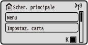 ![]() | [Impostaz. carta] Consente di impostare il formato e il tipo di carta da utilizzare e di registrare la carta utilizzata di frequente. Indicazione di formato e tipo di carta | |