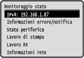 [Visualizza indirizzo IP] Schermata [Monitoraggio stato] del Modello con LCD bianco e nero