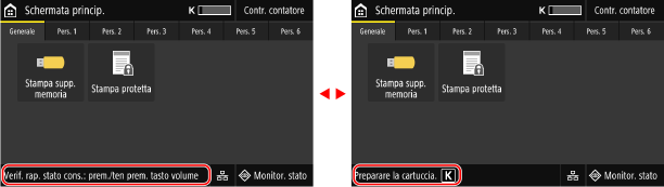 Questa schermata viene visualizzata quando si preme [Monitor. stato] nella schermata [Schermata princip.] e in altre posizioni o si preme