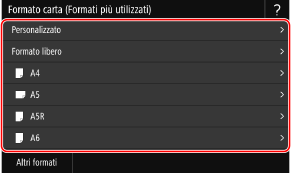 Premere [Altri formati] e selezionare il formato carta dall’elenco visualizzato.