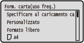 È possibile scorrere la schermata per visualizzare i formati carta (ad esempio buste) non visualizzati sullo schermo.
