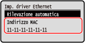 È possibile visualizzare l'indirizzo MAC impostato sulla macchina quando la macchina è connessa a una LAN cablata.