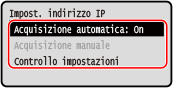 1 | Premere [Acquisizione automatica]. Viene visualizzata la schermata [Impostaz. indirizzo IP (Acquis. autom.)]. |