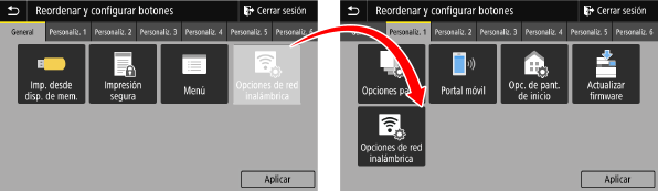 Puede reorganizar los botones en la pantalla de [Inicio] y moverlos a otras pestañas.