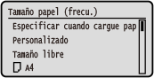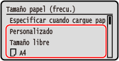 Si necesita cambiar con frecuencia el papel que se va a cargar, configure esta opción como [Tamaño libre]; esto reducirá el número de pasos necesarios para cambiar el ajuste cada vez. También puede mostrar un mensaje de error cuando el ajuste del controlador de la impresora sea significativamente diferente del tamaño del papel cargado.