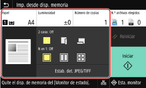 En el panel de control, pulse [Imp. desde disp. de mem.] en la pantalla [Inicio].