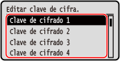 4 | Seleccione una clave de cifrado que no esté registrada y pulse .![]() Aparece la pantalla de introducción de la clave de cifrado. |