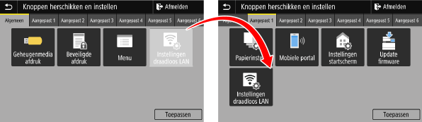 U kunt de weergave-volgorde van de knoppen op het scherm [Start] veranderen en knoppen naar andere tabbladen verplaatsen.