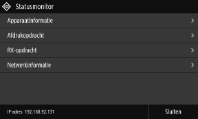 [IP-adres weergeven] [Apparaatstatus]
