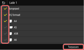 Maak het selectievakje van de te verbergen papierformaten leeg en druk op [<Toepassen>]
