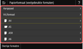 Druk op [Overige formaten], en selecteer het papierformaat uit de weergegeven lijst.