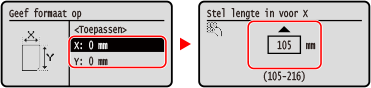 2 | Voer de waarden in in [X] en [Y], en druk op [Toepassen]. Als veelgebruikte niet-standaard formaten zijn geregistreerd, kunt u deze oproepen door op [S1] tot [S3] te drukken. |